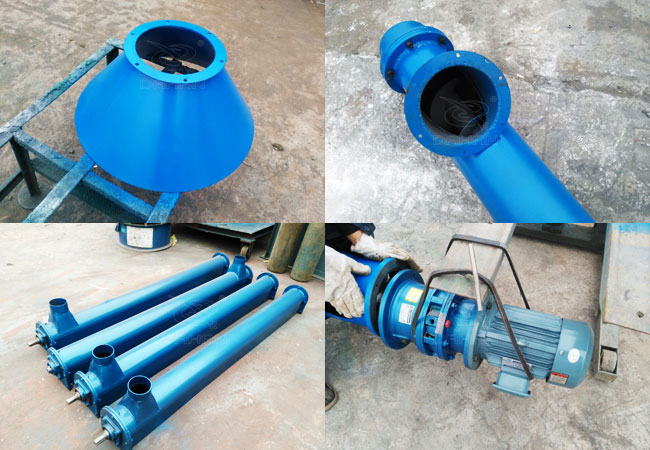 1、傾斜螺旋輸送機屬非基礎固定式,它是由驅動電機減速箱外殼管螺旋體依次相連,結合為一個整體。